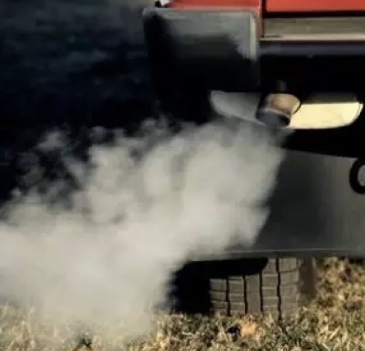 Беловатый дым из трубы выхлопов, двигателя на бензине