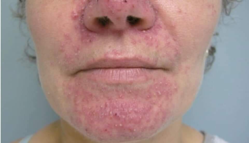 Далее (после 2–4 мес. терапии) интенсивность сыпи обычно уменьшается, и ведущими симптомами становятся паронихии, трещины кожи, ксероз (сухость) кожи и связанный с ней кожный зуд.