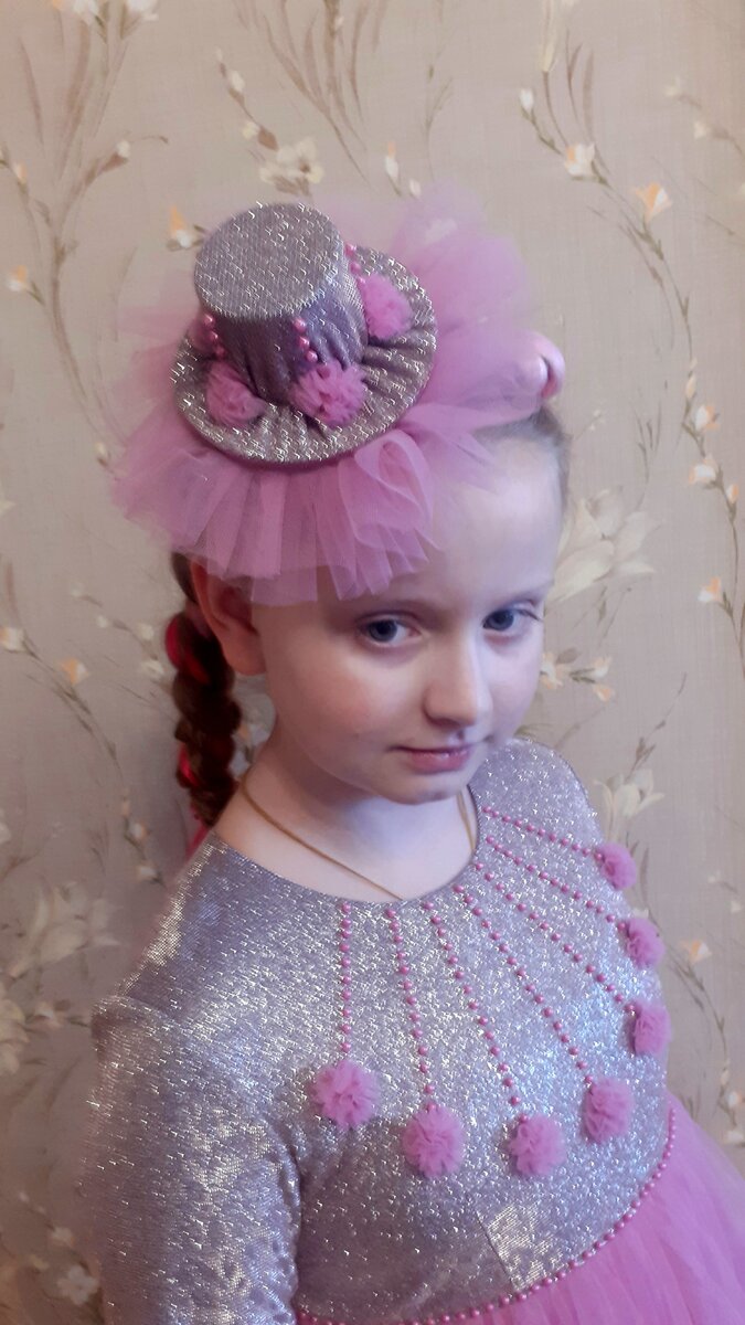 Я шила просто нарядное платье дочке к утреннику в школе, а Даша сама решила, что это будет принцесса бубль гум. Когда шила, ещё не думала заводить канал, поэтому нет фото в процессе пошива, нашла только несколько фото. На платье у меня ушло 5м. розового фатина, 60см. трикотажа с блёстками, 1м. розового креп-сатина на подъюбник, около 20м. косой бейки и розовые бусины для украшения. Шляпку-заколку делала тоже сама. В качестве каркаса для шляпки использовала крышку от круглого пластикового контейнера и крышку от лака для волос. Обтянула их трикотажем, скрепила между собой и украсила бусинами, рюшкой из фатина, приклеила цветы. Снизу пришила заколку. Ну и фото самой принцессы. Ох и намучилась я с этими косами. Этот канекалон постоянно наматывался на пальцы, пытался выскочить из рук, в итоге косы начинались на разном уровне. Сзади этого не видно, а спереди очень бросалось в глаза, вот тут и пригодилась шляпка, закрыла я ей свой косяк. Костюм Рапунцель шила 3 года назад, фотографий сохрани