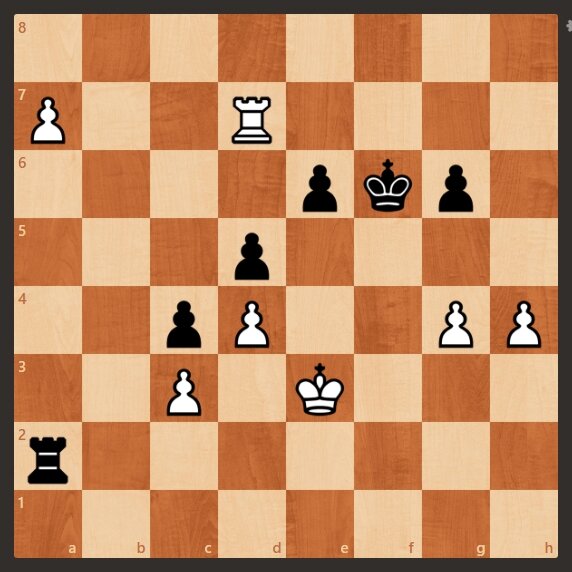 У белых явный перевес. Но как быстро выиграть. Ход белых. Предлагаю найти красивый выигрыш за белых.