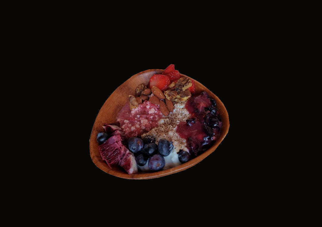 Ингредиенты: Творога , Клубника, Голубика, Красного апельсина, Орехи (миндаль и грецкие орехи), Соль и перец Способ приготовления: Пару ягод клубники помять вилкой, смешать с половиной творога (100 г), выложить на тарелку. Остальной творог поместить рядом. Горсть голубики нагреть в микроволновке, выложить на творог. Рядом выложить нарезанную клубнику, дольки апельсина и свежую голубику. Орехи прижарить на раскаленной сковороде, посыпав солью, перцем и корицей, поместить на творог. Голый творог посыпать перцем и крупной солью (морской).