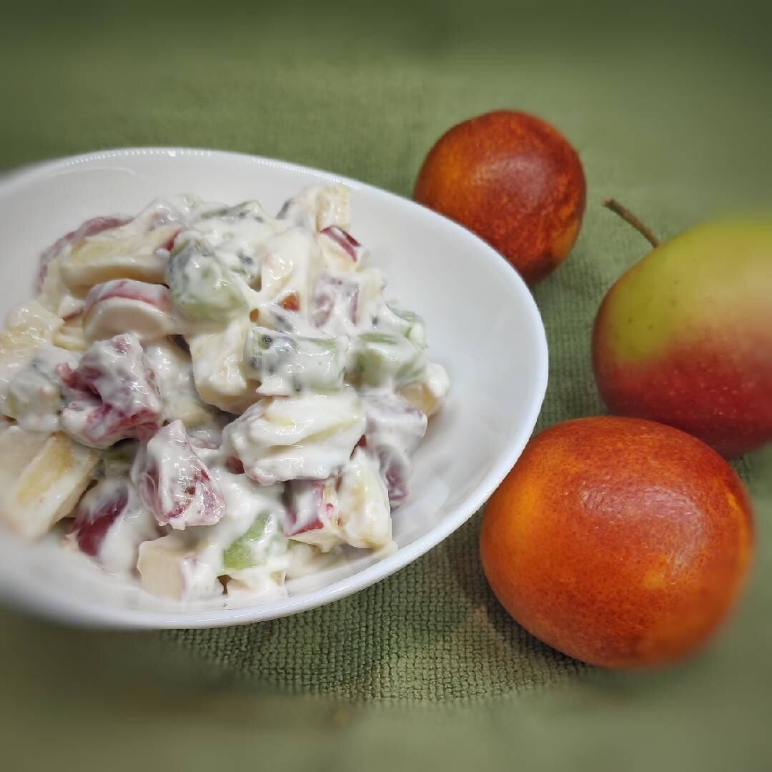 Просто, быстро, вкусно, полезно! #игры Ингредиенты: Киви, Яблоко, Мандарин, сметаны, Сахар , Подать с творожной запеканкой Способ приготовления: Киви и мандарин почистить. Нарезать фрукты кубиками. Приготовить заправку - смешать сметану с сахаром. Салат заправить перед подачей. Можно подать с творожной запеканкой. Приятного аппетита😍! Если вам по душе мои незатейливые рецепты: подписывайтесь и оставляйте свои фотоотзывы📸!