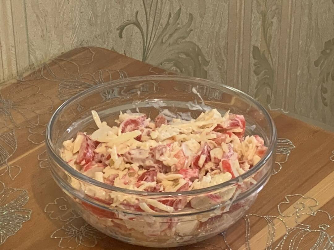 Салат с крабовыми палочками, помидором и сыром