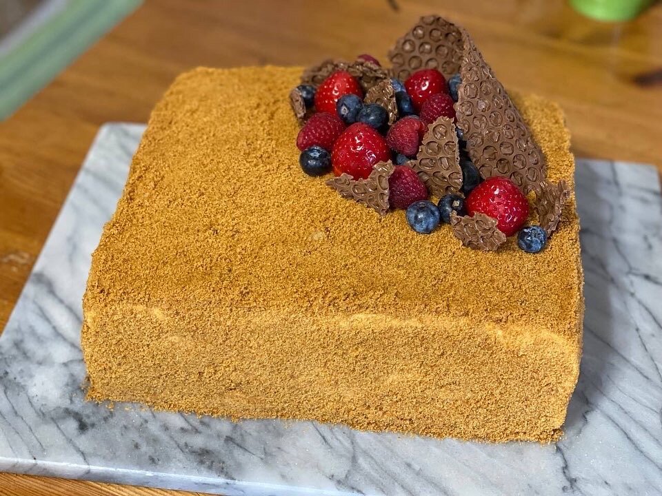 На день рождения нашей любимой Лауры Ашотовны готовили домашний торт.