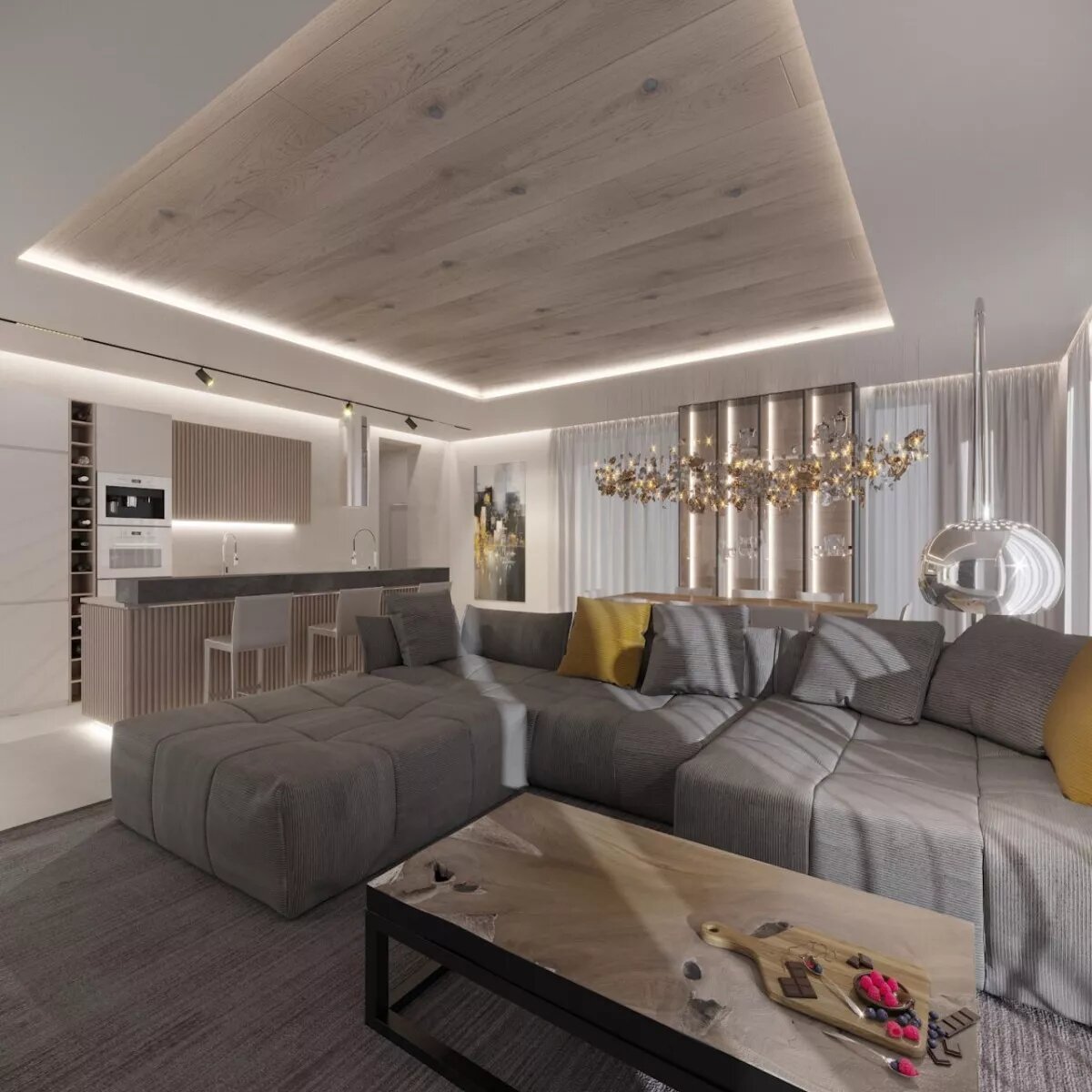 Сегодня мы расскажем вам о том, как сделать недорогой ремонт в доме качественно и со вкусом. Примером нам послужит реальная история из практики. Обычная история из жизни Концепция интерьера общественной зоны Белый, серый и оттенки светлого дерева умиротворяюще воздействуют на психику, а выразительные акценты, редкие вкрапления охры и брусники радуют глаз. Так дизайнеру проекта Марии Грин удалось сделать бюджетный интерьер изысканно-монохромным и расцветить его солнечно-золотыми акцентами. Очаровательны и своеобразны стол с нарочито-грубой деревянной столешницей и подвешенная над ним легкая люстра, скомпонованная из десятков маленьких лампочек и металлических элементов декора. Кухонная зона гостиной Для того, чтобы грамотно спроектировать ремонт — утвердить концепцию, заложить в смету необходимое оборудование, мебель, вентиляцию — обязательно начните с проекта вашего интерьера. Дизайн-проект позволит точно рассчитать бюджет ремонта и провести закупки мебели и материалов согласно специфи