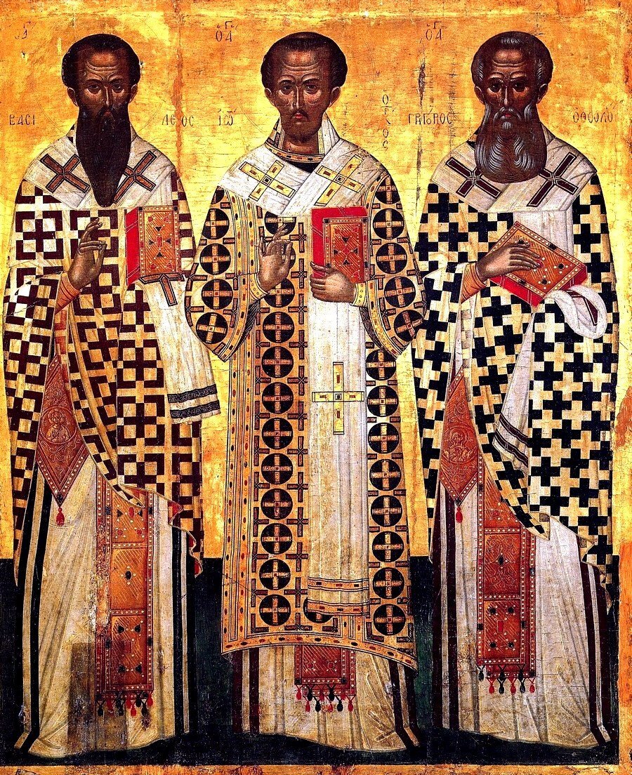 Святитель Григорий Богослов: "Воспеваю Тебя, Живая Троица, Единая и единственно единоначальная, Естество неизменяемое, безначальное, Естество неизглаголанной сущности, Ум непостижимый в мудрости, небесная Держава, непогрешимая, неподначальная, беспредельная, Сияние неудобозримое, но все обозревающее, от земли и до бездны ни в чем не знающее для Себя глубины!...Не успею помыслить о Едином, как озаряюсь Тремя. Не успею разделить Трех, как возношусь к Единому. Когда представляется мне Единое из Трех, считаю это целым; Оно наполняет мое зрение, а большее убегает от взора. Не могу объять Его величие, чтобы к оставшемуся прибавить большее. Когда соединю в умосозерцании Трех, вижу Единое Светило, не умея разделить или измерить соединенного Света... Три суть едино, — едино же не ипостасию, но Божеством — Единица в Троице поклоняемая, и Троица в Единице возглавляемая, вся достопоклоняемая, вся царственная, единопрестольная, равнославная, премирная и превысшая времени, несозданная, невидимая, неприкосновенная, непостижимая. Сама только ведущая о Себе, какой порядок имеет Сама в Себе, а для нас равно досточтимая, достойная равного служения, Едина восходящая во Святая Святых, всякую же тварь оставляющая вне, и отделяющая иных первою, а других второю завесою, так первою отделены от Божества существа небесные и Ангельские, второю же отделено наше естество от существ небесных!...Представь, что Троица есть одна жемчужина, отвсюду имеющая одинаковый вид и равный блеск; если одна какая-нибудь часть сей жемчужины будет повреждена, то утратится вся приятность камня. Когда бесславишь Сына, чтобы почтить Отца, Отец не приемлет твоего чествования. Не прославится Отец бесславием Сына... Честь Сына не будет ли честью и для Отца?.. Если бесчестишь Святого Духа, то и Сын не принимает твоего чествования; ибо хотя Дух и не как Сын от Отца, однако от Того же Отца. Или почитай всецелую Троицу, или не оказывай Ей всецелой чествования, чтобы быть последовательным в своем суждении...Когда произношу слово Бог, вы озаряйтесь единым и тройственным светом – тройственным в отношении к особенным свойствам, или к Ипостасям... или к Лицам... единым же в отношении к понятию сущности и, следственно, Божества. Бог разделяется... нераздельно и сочетавается разделенно; потому что Божество есть Единое в трех, и едино суть Три, в Которых Божество, или, точнее сказать, Которые суть Божество".