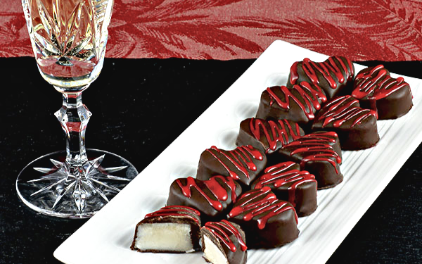 Подцепляйте мятные сердечки вилкой, окунайте их в остывший растопленный шоколад. После того, как начинка будет со всех сторон покрыта шоколадом, дайте стечь излишкам шоколада и поместите готовые конфеты на холодную тарелку. Подождите около получаса, пока конфеты высохнут.