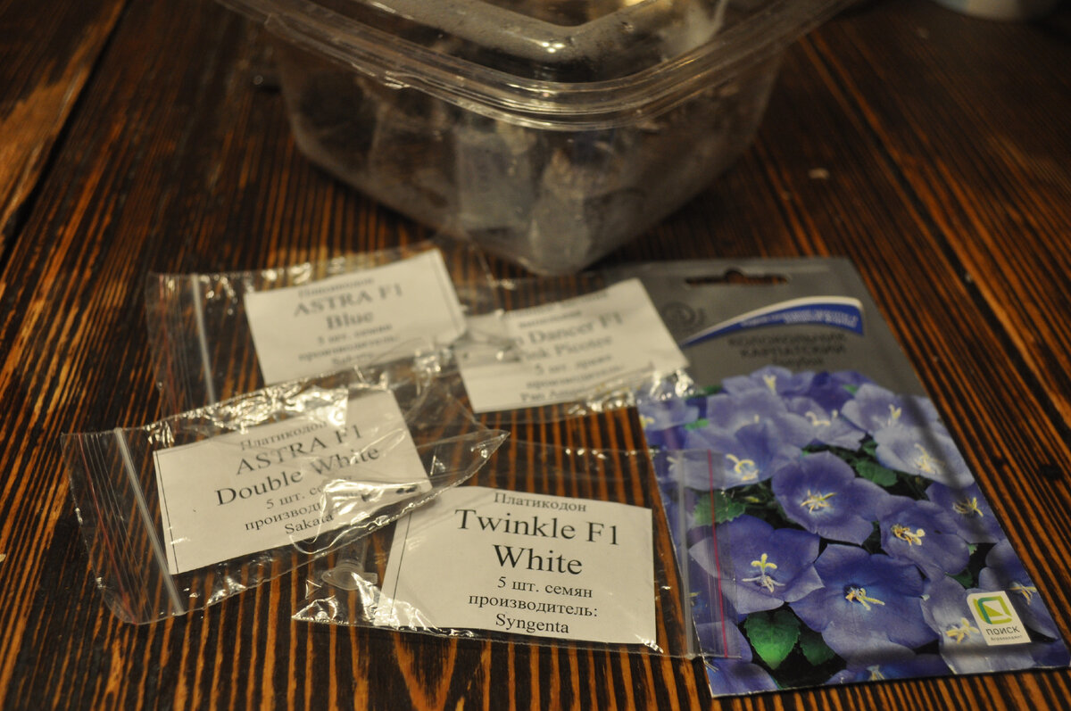 Эти два растения из семейства Колокольчиковые, семена которых мне удалось приобрести - низкорослые, до 15 сантиметров. Планирую поселить их на альпийскую горку. Условия выращивания рассады и условия произрастания у них весьма схожи, поэтому я объединила их в одну статью. И платикодон, и карпатский колокольчик предпочитают цвести на солнце, застоя воды не любят, но в то же время требует регулярных поливов. Ухаживать за ними очень легко. Они отличаются неприхотливостью, отлично переносят зимние холода. К почвам не требовательны, хотя любят минеральные подкормки, редко поражается вредителями. Ширококолоко́льчик, или Платико́дон (лат. Platycodon) — монотипный род растений, включает единственный вид — Ширококолокольчик крупноцветковый (Platycodon grandiflorus). В интернет-магазине профессиональных семян мной были приобретены Astra F1 Blue имахровый White Double от японской компании Саката, Twinkle F1 White от швейцарской компании Сингента. Карпатский колокольчик -(Campanula carpatica)