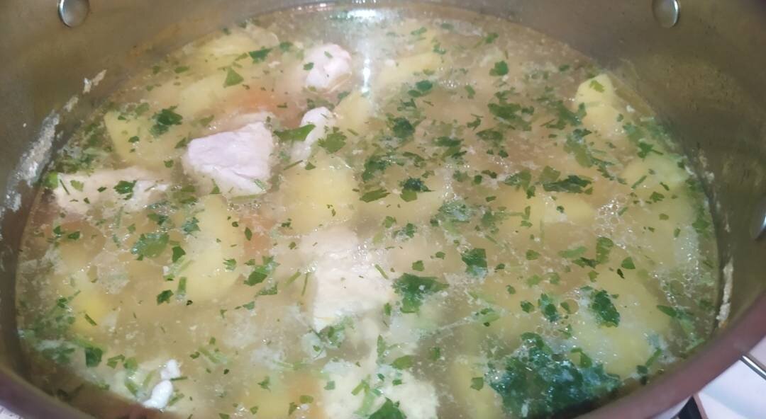 #меню Ингредиенты: грудка куриного филе, лук, помидор, картофель, зелень, укроп, петрушка, соль, перец, растительное масло для жарки Способ приготовления: Мясо курицы нарезать на кубики, лук нарезать кубиком, помидор дольками, картофель кубиком нарезать. Обжарить лук до прозрачности. Добавить мясо жарить помешивая. Добавить помидор посолить, поперчить. Залить водой, варить до полуготовности мяса. Добавить картофель варить до готовности, в конце посыпать мелко нарезанную зелень и снять с огня.