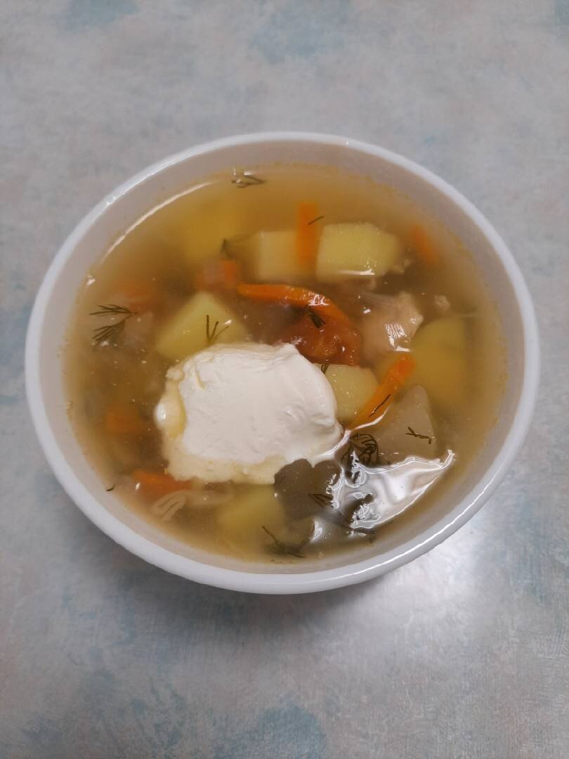 Рецепт из разряда проще простого, а результат несомненно порадует 😊👍 я открыла для себя такие щи, когда в очередной раз начала готовить куриный суп и вдруг захотелось разнообразия, а в морозилке кроме зелени нашёлся мешочек квашеной капусты). Ингредиенты: филе одного куриного бедра (это облегчённый вариант, не жирный), небольшая луковица, небольшая морковь, квашеной капусты (у меня домашняя), средних томата (у меня консервированные домашние), небольших картофелины, соль, перец горошком, лавровый лист, зелень укропа, сметана для подачи Способ приготовления: В кастрюлю с водой кладем размороженное филе курицы, доводим до кипения, снимаем накипь, затем убавляем огонь и варим минут 15. Лук и морковь моем, обсушиваем и нарезаем произвольно. Лук средним кубиком, морковь соломкой. Добавляем к мясу и варим минут 10. Добавляем квашеную капусту и варим ещё 10 минут. Картофель моем, обсушиваем и нарезаем кубиком. Добавляем в кастрюлю. Варим 10 минут. На этом этапе извлекаем мясо и нарезаем прои