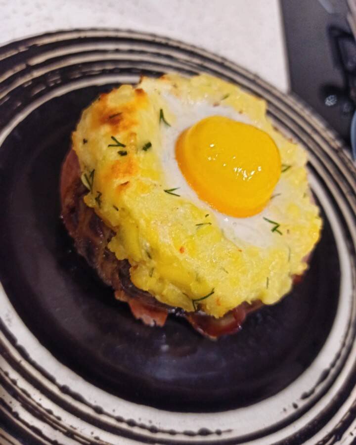 Такой картофель вы ещё точно не ели😋. Ингредиенты: Крупные картофель, Сыр, Яйца, Бекон, 12 ломтиков, Укроп, Соль, перец Способ приготовления: Картофель очень хорошо промыть. Сверху сделать много мелких дырочек вилкой. Полить растительным маслом, посолить. Убрать в духовку. Запекать 40 минут при температуре 200°С. Срезать верхушку у картофеля. Извлечь мякиш, чтоб получились лодочки. Бортики лодочек оставить тонкими, примерно 5 мм. Половину извлечённого картофеля оставляем для начинки. Картофель растолочь вилкой, добавить натертый сыр и измельчённый укроп. Картофельные лодочки оборачиваем беконом. На каждую лодочку 3 ломтика бекона. Фаршируем плотно лодочки сырно-картофельным пюре. Оставляя небольшое углубление для яйца. В каждую лодочку кладём яйцо, чтоб желток был целый. Убираем в духовку на 15 мин при температуре 180°. Через 15 мин достаем и наслаждаемся. Желток остаётся жидкий, растекается по картофелю😋 Сырно-картофельное пюре тянется за счёт расплавленного сыра. Это очень вкусно ?