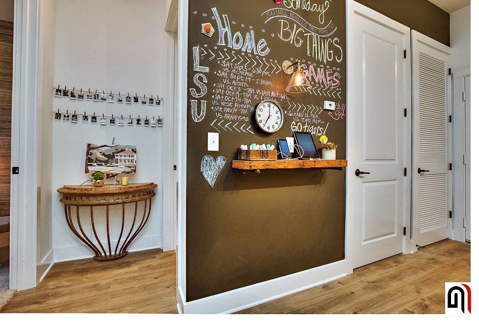 Мода не стоит на месте, а в мире ремонта и обустройства дома постоянно появляются новинки, которые позволяют не только сэкономить пространство, но и сделать его максимально удобным. Сегодня, вразрез привычным нам обычным обоям, есть не только те, которые можно красить, появился ещё более интересный материал – грифельная краска, и наносится он сразу на стену. Инновации в сфере отделки Грифельная краска дает необычный эффект школьной доски. Такой эффект можно увидеть в общественных заведениях чаще всего, но последнее время грифельная краска стала популярной в оформлении квартир и домов. Графитовые стены не только стильно и ярко выглядят, но и достаточно функциональны. Так что это такое и из чего состоит? Грифельная краска – это инновационный материал, позволяющий использовать стену в качестве «школьной» доски. Краску делают из латекса, который достаточно легко и быстро растворяется в воде. Пока краска не засохла, с ней можно проводить различные операции, но стоит материалу встать, как