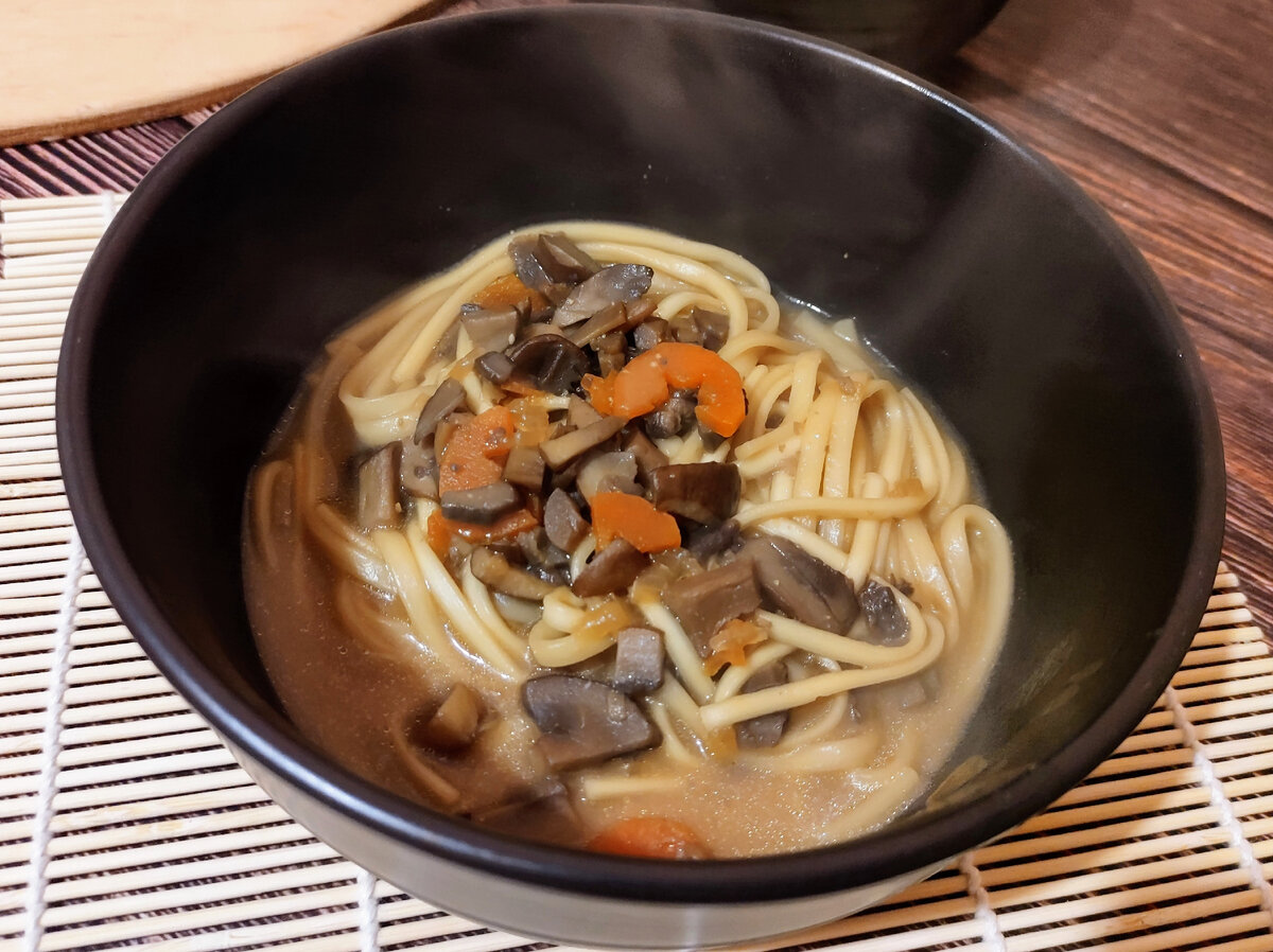 Можно долго расписывать причины, по которым его стоит приготовить, я назову лишь две. ✔️Во-первых — это вкусно. ✔️Во-вторых — необычно. И готовить легко. Из непривычных ингредиентов — только мисо, но пасту сейчас можно купить практически в любом сетевом магазине (или заказать на маркетплейсах). Берем: Как готовим: Мелко нарезанные шампиньоны обжариваем в сливочном масле прямо в кастрюле Лук нарезаем кубиками. морковь — кругляшами. Вырезание звездочек совсем не обязательно, у нас дома это периодически делают, чтобы детям было интереснее есть. Лук и морковь отдельно обжариваются на растительном масле — классическая зажарка. Когда шампиньоны в сливочном масле обжарятся, добавляем два литра воды. В полулитре кипятка разводим мисо-пасту и — тоже в суп. Даем закипеть, забрасываем зажарку. Добавляем удон. Через 3-5 минут все готово. Приятного аппетита!