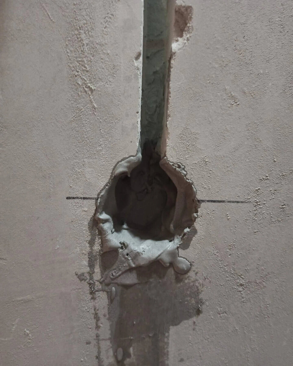 Если знаете планировку квартиры и расположения в ней железобетонных пилонов заранее, то старайтесь не планировать в них прокладку кабеля и монтаж розеток