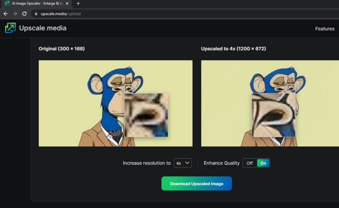 Есть нужное изображение в единственном экземпляре, и оно сжато на 10 шакалов из 10. А другого размера просто нет. Что делать? В этом нам снова помогут современные технологии и нейросети. Upscaler — бесплатный инструмент на базе искусственного интеллекта, который автоматически масштабирует изображения всего за несколько секунд. Нейронка «растягивает» изображение в два или в четыре раза, не снижая его качество. Как использовать инструмент: загружаем или перетаскиваем изображение, выбираем коэффициент увеличения изображения «Increase resolution to». Ещё в процессе можно убрать шумы и повысить качество через тумблер «Enhance Quality». Всё абсолютно бесплатно. Поддерживаемые форматы: .png, .jpeg, .jpg, .webp. Подписывайся на Эксплойт в Telegram, чтобы не пропустить новые компьютерные трюки, хитрости смартфонов и секреты безопасности в интернете.