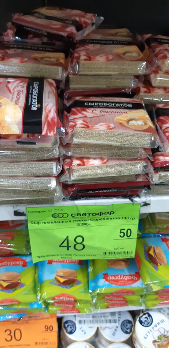 Всем привет! Недавно я был в магазине светофор и увидел там продукты нового поступления, сегодня я вам про них расскажу! 1. Сыр Цена - 48.50 (130 гр.) Отличный сыр в пластинках, который обычно используется в ресторанах, где продаются бургеры. Очень нежный и яркий вкус! Так же есть в других исполнениях: с грибами и классический. Я использую его для бургеров и бутербродов. Состав: сыр, вода, масло сливочное, молоко сыворотка, бекон, загуститель, белок молочный, эмульгаторы, агент желирующий, соль, консервант. 2. Сок сады придонья Цена - 42.90 (0.95 л.) Отличный продукт, но не стоит его путать с соком Сады придонья, который вы видели в других магазинах. Это нектар, значит он более водянистый чем классический сок. Это так и есть, этот напиток очень хорошо освежает, имеет небольшую яблочную кислинку. К сожалению в светофоре есть только этот вкус сока. Состав: яблочный сок, сахар, лимонная кислота, вода. 3. Специи Цена - 82.70 (3 шт.) Большое разнообразие различных пакетов со специями, ест