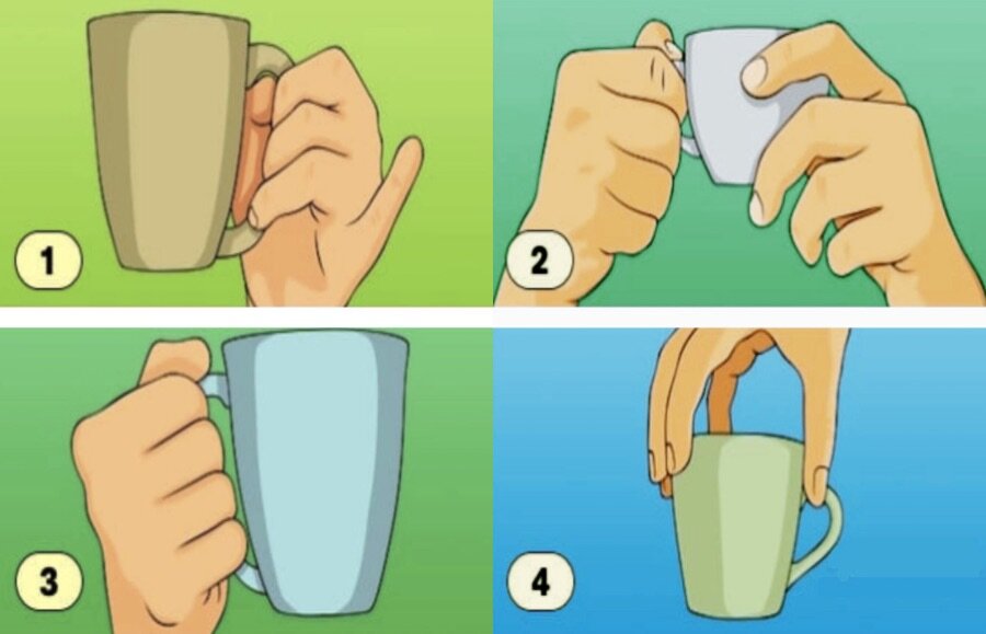 Вы знали, что, как именно вы держите чашку в руках, много может сказать о вашей личности? Оказывается — да. Если вам интересно узнать, как на этот факт влияет ваша личность и характер, то выберите ваш вариант на картинке ниже. Выберите как вы привыкли держать кружку: Мой вариант — 1