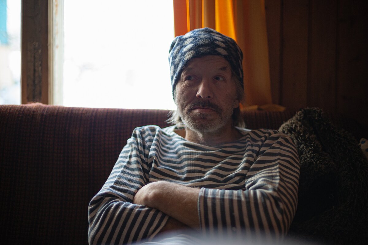 Саша участвовал в протестах 2019 года, ходил на митинги и жил в хостеле — тогда мы все помогали, скидываясь, кто сколько мог, даже снялся в «Петровых» Серебренникова. Актеры привезли ему брендовую одежду, с ним делали интервью и фотографировались. Сейчас Саша живет на даче одного московского активиста под Истрой, летом — работает в огородах соседей за деньги, растит собственный сад и раздает овощи и фрукты всем знакомым, а зимой топит печь, рубит дрова и слушает по плохо работающему приемнику «Эхо Москвы». Я приехала навестить друга и поговорила с ним обо всём понемногу.