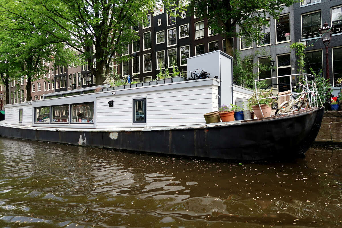 Недавно я рассказывала о замечательной прогулке на кораблике по каналам Амстердама. Это была очень красивая и приятная прогулка, на которой мы увидели город с совсем другого ракурса. А еще во время этого круиза меня очень поразила одна вещь - многочисленные жилые баржи, припаркованные вдоль каналов. Их не просто много, а очень много. На них постоянно живут люди, а иногда и домашние животные. На некоторых баржах даже оборудовано что-то типа микро-садика. История появления такого необычного жилья в столице Нидерландов объясняется просто. Город прорезают десятки каналов, а после окончания Второй мировой войны жилья для горожан не хватало. Вот тогда и вспомнили про стоящие без дела старые баржи. По сути это готовое жилье и разместить его можно прямо в центре города. Со временем жизнь на воде перестала быть необходимостью, зато стала модной тенденцией. Жилье на баржах начали покупать состоятельные люди, и в настоящее время такая квартирка на воде стоит не меньше, чем аналогичная на с