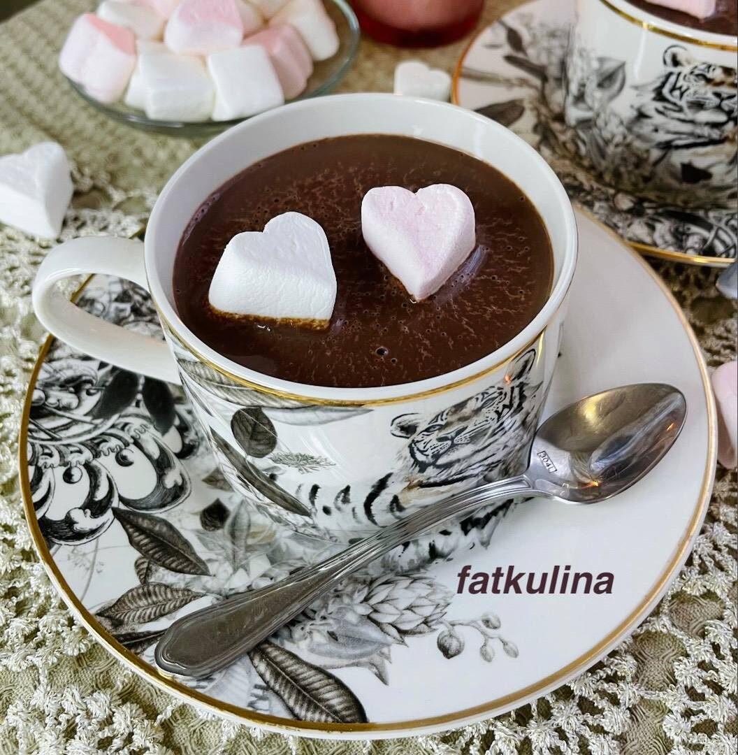 #валентинки #игры Предлагаю приготовить вкусный, густой и по зимнему согревающий напиток, для хорошего настроения! Ингредиенты: молоко, гр горький шоколад, крахмал кукурузный, Маршмеллоу для украшения Способ приготовления: В чаше соединить крахмал с небольшим количеством молока из общей массы. Перемешать в однородную массу. В сотейник или ковш вливаем молоко, кладём шоколад (70%) варить на среднем огне до растворения шоколада. Тонкой струйкой вливаем молочную смесь с крахмалом. Перемешиваем венчиком, чтобы не было комочек. До кипения доводить не обязательно. Украшаем маршмеллоу. Он придаст сладость напитку. Если любите послаще добавьте сахар по вкусу. Также можно добавить любимые специи, молотую корицу, бадьян, мускатный орех. ПРИЯТНОГО АППЕТИТА!