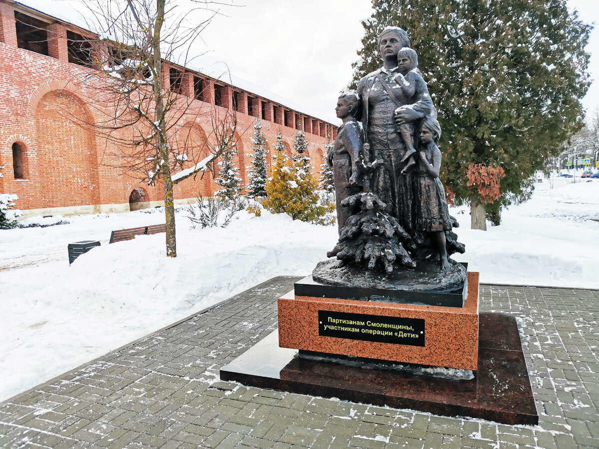 В центре Смоленска, на площади Победы, в конце 2021 года появился новый памятник. Он посвящён одной из легендарных операций в годы ВОВ на смоленской земле - операции «Дети», которая прошла летом 1942 года. Памятник, названный «Партизанам Смоленщины – участникам операции «Дети» установлен в Парке пионеров, напротив стелы, посвящённой пионерам-героям. Летом 1942 года учительница Матрёна Исаевна Вольская вывела из оккупированных Демидовского и Духовщинского районов Смоленской области несколько тысяч смоленских детей, которых хотели угнать на работу в Германию. Выйти трёхтысячной колонне детей в советский тыл помогали партизаны. Спасенных детей устроили в городе Горьком (ныне – Нижний Новгород). Партизаны исследовали маршруты движения, выявляли точки питания и ночлега. Командир партизанского соединения «Батя» Никифор Захарович Коляда поручил задание 23-летней учительнице и партизанке Матрёне Исаевне Вольской, Варваре Сергеевне Поляковой и медсестре Екатерине Ивановне Громовой. Уника