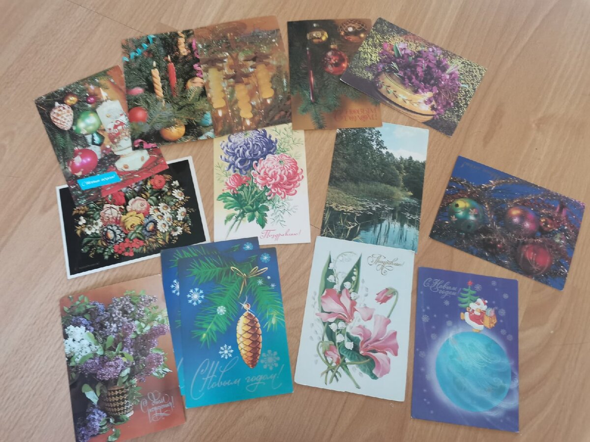 Так уж получилось, что еще в подростковом возрасте я увлеклась написанием бумажных писем: это какая-то особенная атмосфера, что-то уже забытое и связанное с ностальгией, но, конечно, написание писем от руки уже сменилось электронным общением. Именно поэтому письма писались не друзьям или родственникам, как было раньше, а случайным знакомым, которых, собственно, и узнавали по переписке. С возрастом времени было все меньше, поэтому постепенно это хобби уходило в прошлое. Но я хочу поговорить об открытках, а точнее показать нашу небольшую коллекцию, которую собрала мама. Мой вклад, конечно, присутствовал, но уже в виде современных открыток. Ее же коллекция состоит из советских почтовых открыток: Каждая открытка словно имеет свою историю: на них смотришь и видишь красоту, они похожи на фотографии, в них читается что-то такое теплое и уютное. Больше всего почему-то было карточек с поздравлениями с Новым годом, но и среди них очень много любопытных экземпляров. Все эти открытки не подписанны