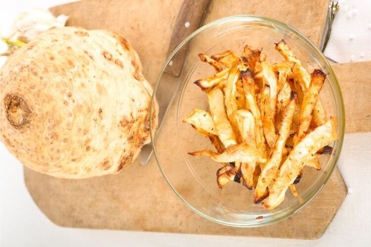 Если вы еще не слышали о картофеле фри из сельдерея, самое время его попробовать. Здоровый вариант картофеля фри полон витаминов, и вы можете наслаждаться им без сожаления. Ингредиенты на 2 порции Картофель фри с сельдереем: Йогуртовый дип: Процедура Общее время приготовления: 45 мин 1. Очистите сельдерей, нарежьте его сантиметровыми ломтиками, а затем сантиметровыми картофелинами. Поместите в миску. 2. Добавьте 4 столовые ложки масла, приправьте солью, добавьте 1-2 чайные ложки сушеного чеснока, 1-2 чайные ложки порошка карри и перемешайте все вместе. Добавьте нарезанный миндаль. 3. Застелите противень бумагой для выпечки и выложите на него чипсы. 4. Выпекайте при температуре 200 градусов в течение 25-30 минут. 5.Тем временем приготовьте дип. Положите сливки, белый йогурт в миску. Добавьте немного соли. Сбрызните небольшим количеством лимонного сока (около 2 чайных ложек, по вкусу). Добавьте немного перца, совсем чуть-чуть. 6. Окуните картофель фри в соус. Наслаждайтесь
