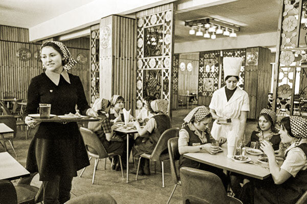Здравствуйте, дорогие друзья! Сегодня мы предлагаем нашим читателям заглянуть в разные сферы жизни советского времени. Нас ждет разговор о спорте и телевидении СССР, мы немного попоем, поговорим о предметах мебели той эпохи, окунемся в детство, вспомним историю и цены на некоторые товары. Мы не раз вспоминали советский общепит и надо сказать, что в целом он заслуживал положительной оценки. СССР изначально довольно серьезно подошел к вопросу питания своих граждан. Были созданы специальные структуры, которые занимались расчетом и подбором рациона питания для всех категорий граждан, питающихся в столовых: начиная от детских учреждений и заканчивая производственными предприятиями. Например, в школьных столовых рекомендованное меню составлялось с учетом возраста учеников и региона их проживания, а для столовых на производстве обязательно учитывалась его специфика: расчет рациона для работников умственного и физического труда отличался. Если бы можно было охарактеризовать питание в советских