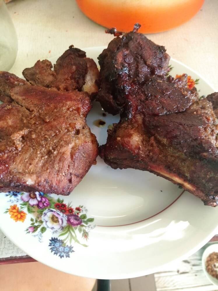 #игры Ингредиенты: Рёбрышки, Приправа для мяса, Соевый соус, Масло подсолнечное Способ приготовления: Рёбрышки разрезать по косточки, замариновать на 3 часа в смеси из соевого соуса, подсолнечного масла и приправы. Разогреть духовку до 200°©, выложить в форму, смазанную маслом, рёбрышки и запекать 1 час.