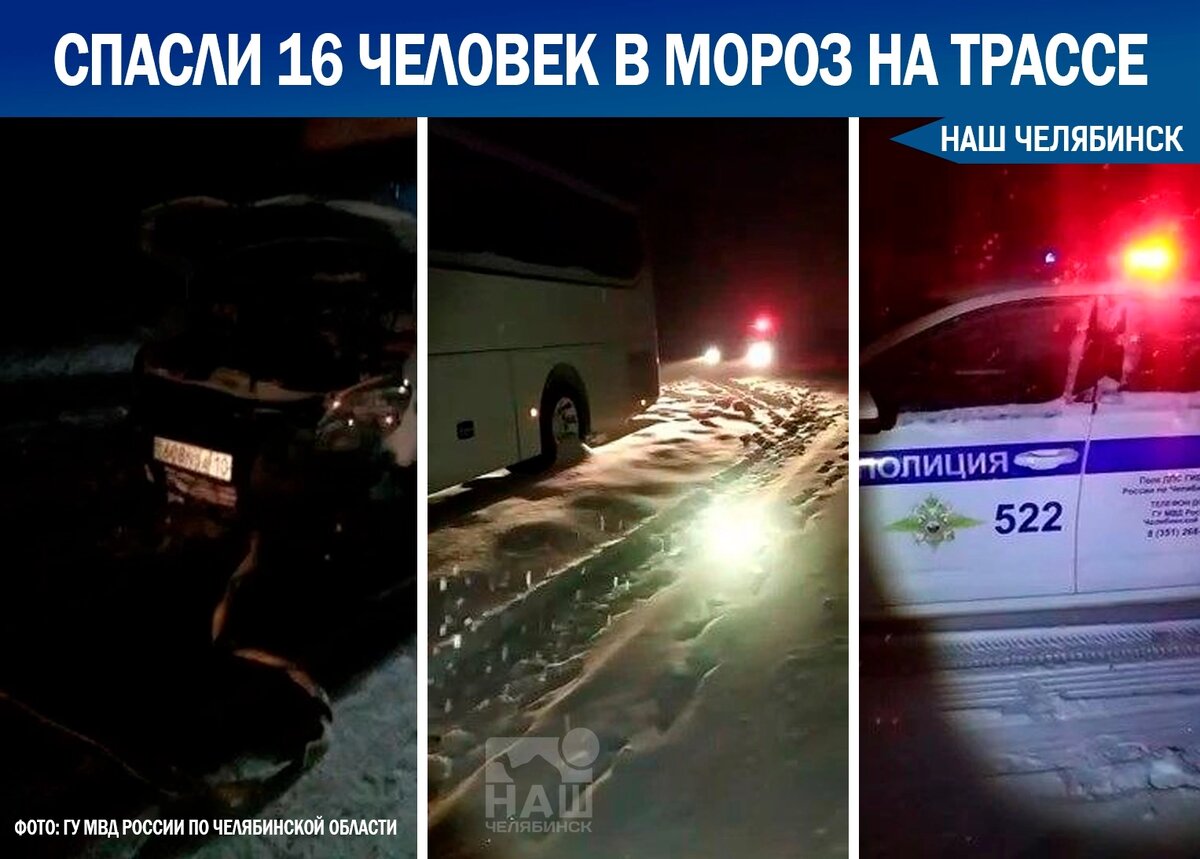 Сотрудники ГИБДД не дали замерзнуть водителю и 15 пассажирам рейсового автобуса на трассе.