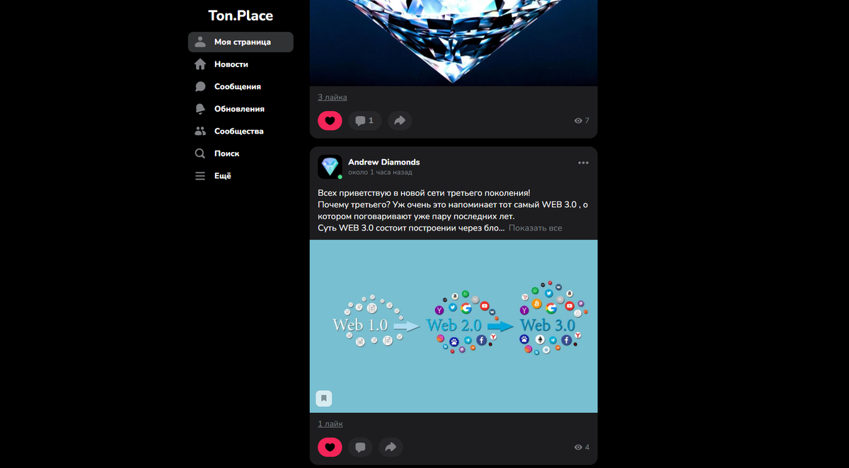 Всех приветствую! На днях появилась новая соцсеть от создателя ВК и Telegram Павла Дурова Ton.Place Первый шаг. Регистрация Переходим по ссылке Входим через Telegram , если кто еще не в "Телеге" - настоятельно рекомендую зарегистрироваться. Второй шаг. Подписка Ton.Place построен на выплате поощрений создателям контента в зависимости от просмотров, лайков и др. Чтобы смотреть контент нужна подписка. Она на данный момент составляет 2 TON. По текущему курсу это около 450 руб. Из доступных способов пополнения кошелька самый удобный по моему мнению это CryptoBot. Сначала через перевод с карты на карту пополняем кошелек в боте, а потом выводим на свой. Свой кошелек скачиваем на телефон, вот ссылка на оф.сайт кошелька Tonkeeper. Обязательно!!! Записываем seed-фразу от кошелька!Она состоит из 24 слов, даётся при регистрации нового кошелька. Без неё вы не сможете зайти в кошелек. После пополнения своего кошелька, оформляем подписку и теперь вам доступны все возможности Ton.Place. Третий ш