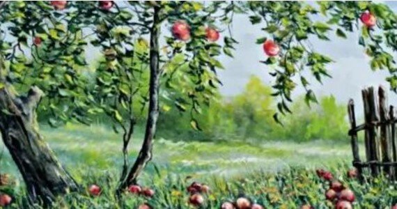 И он повел его за дом. Там, где раньше они сажали картошку, был сад. Алёша подбежал к сидящей в тени деревьев бабушке: