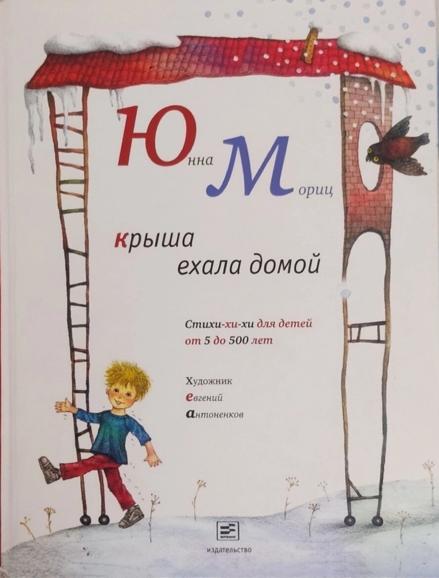 Мало кто не знаком с мультфильмом "Большой секрет для маленькой компании" и его многочисленными песенками, но не все знают автора - это Юнна Мориц. Её стихи для детей положены на музыку и достаточно известны: "Ёжик резиновый", "Пони девочек катает", "Не секрет, что друзья не растут в огороде (песенка пони)" и многие другие. У Юнны Мориц много произведений и книг издано тоже довольно много. Я выбрала ту, в которой практически все стихотворения мне знакомы. Книга "Крыша ехала домой" содержит в себе целый ворох стихотворений Юнны Мориц. Стихов здесь много и есть на любой вкус - от самых абсурдных ("Хохотальная путанница") до трогательных ("Шло по улице окно"), но все они легко читаются и неизменно радуют детей. Я начала читать стихи своей дочери с двух лет, уже тогда она пыталась повторять особо понравившиеся слова и рифмы. Сейчас Даяна знает отрывки из нескольких стихотворений, которые она сама выбрала и заучила. Вот из самых любимых у неё: "Веселая лягушка" и "Куда делся понедельник?"
