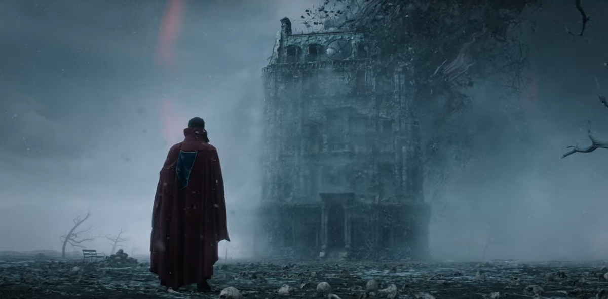 В конце трейлера нам показывают, как Вонг, чуть не сорвавшийся с обрыва, зовет Стренджа. На самом пике стоит темная версия Стивена, которая втягивает в себя темных существ. В следующем кадре еще более темная версия Стренджа показывает свои жуткие способности. Если Вонг действительно звал этого Стренджа, то можно предположить, что Стивен из нашей вселенной слишком сильно увлекся темной магией, как это было в мультсериале "Что, если...?".