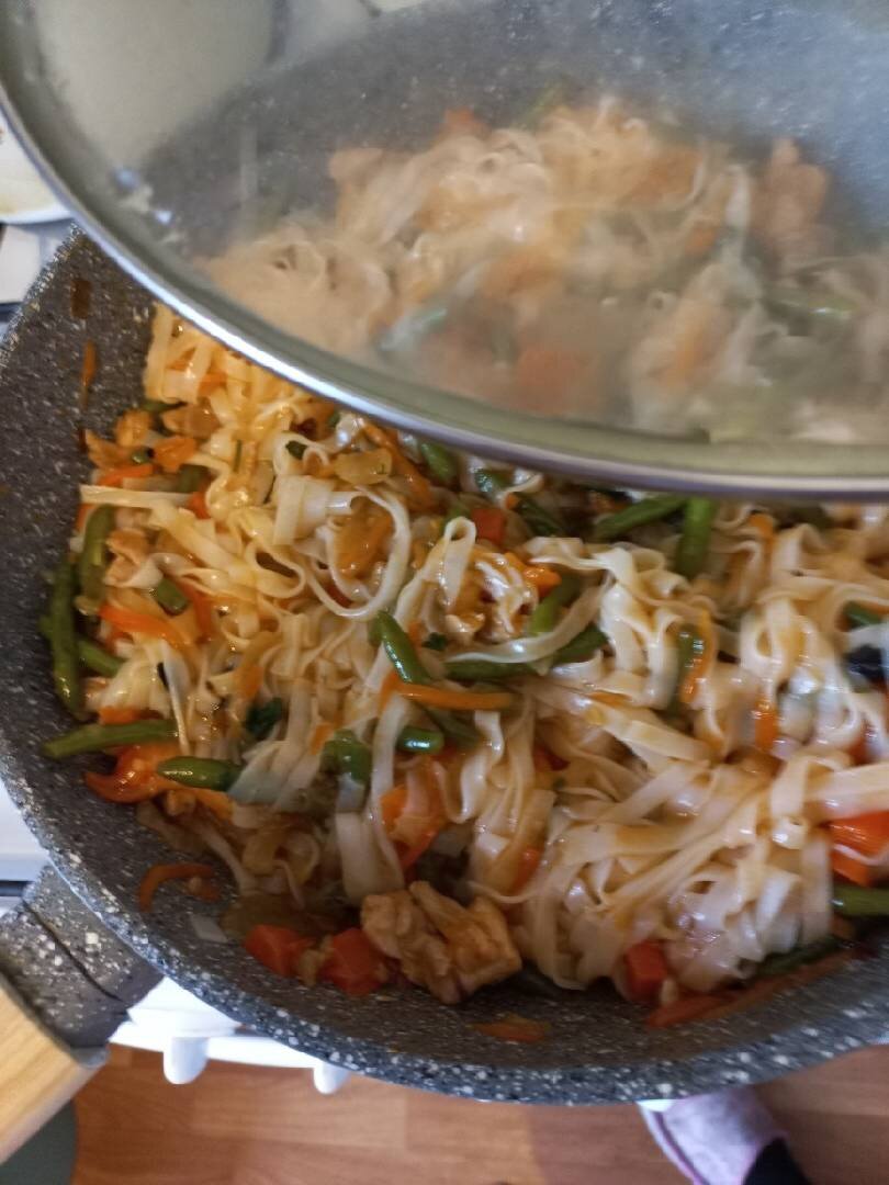 Рисовая лапша с овощами и курицей без глютена