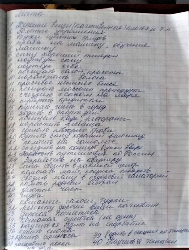 И какие-то вполне конкретные мужчины смеются над этими желаниями, издеваются над ней в комментариях и считают, что женщины совсем обнаглели. Что с вами не так, смеющиеся мужчины? Куда вам семья, если вы не можете обеспечить ей даже базовые элементарные потребности? Если бы я однажды нашла такую тетрадку у своего сына или мужа, и там было бы написано про поездки по России, велосипед и эти проклятые роллы, я бы пару дней умирала от жгучего стыда, а потом влезла бы в долги, работала бы по 20 часов в сутки, но купила бы этот проклятый велосипед, и наскребла бы денег на Краснодарский край. Уж если не для мужа, то для ребенка точно. Потому что очень стыдно, если твои самые близкие люди мечтают о таких простых вещах.