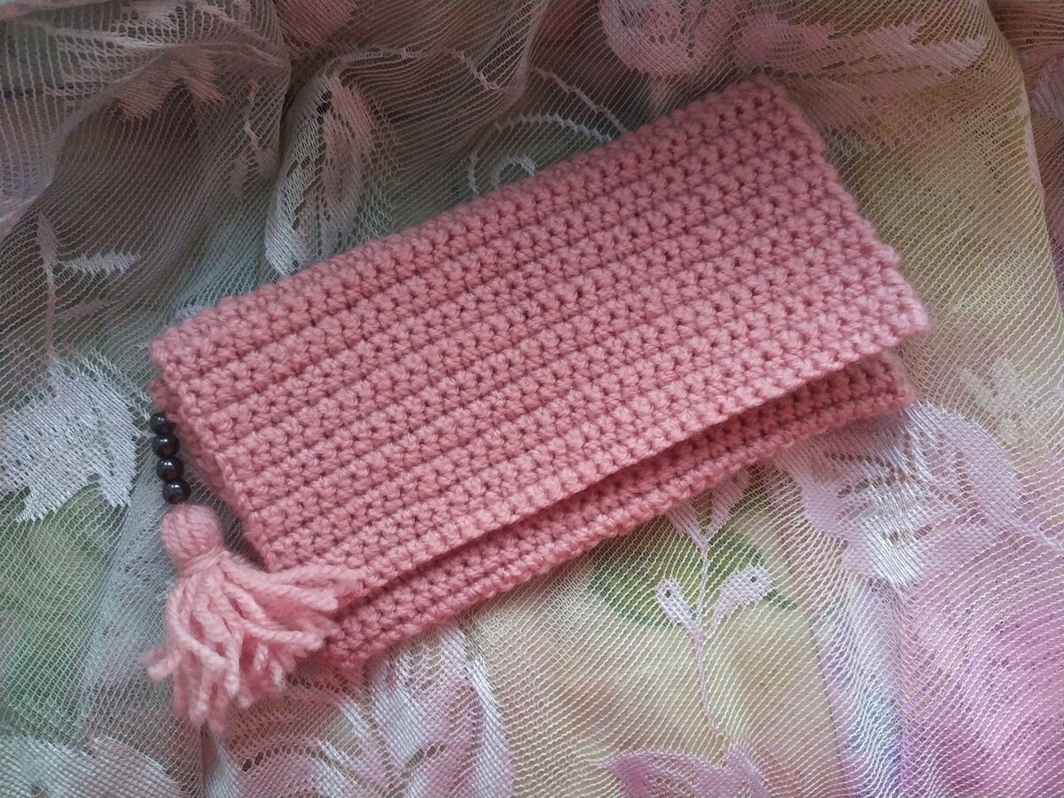 Теперь украсим наш футляр кисточкой с бусинками и все будет готово.Я взяла бусинки от старого магнитного браслета, а кисть сделала из этой же пряжи.Я просто обвязала 25 раз вокруг 3 пальцев