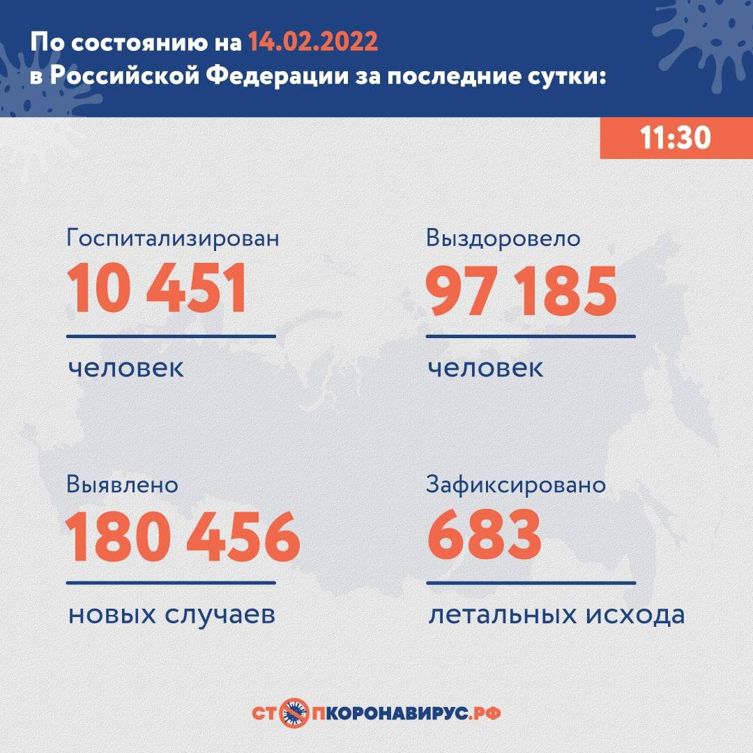 Число заболевших коронавирусом в России за сутки — 180.456 человек.