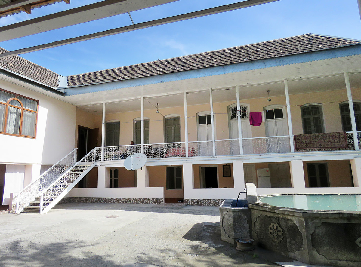 Мы сразу с ним как-то сдружились, тем более русским гостям Руслан был особенно рад - в России он прожил большую часть жизни и имел неплохой полицейский чин, а в итоге вышел на пенсию и вернулся в родные Шеки заниматься туризмом. Собственно, гостиница - это старый дом-каре, построенный лет 110-120 назад в нухинских предместьях. Один его угол занимает семья хозяина, а большую часть - номера вдоль коридора с уютным старомодным интерьером.