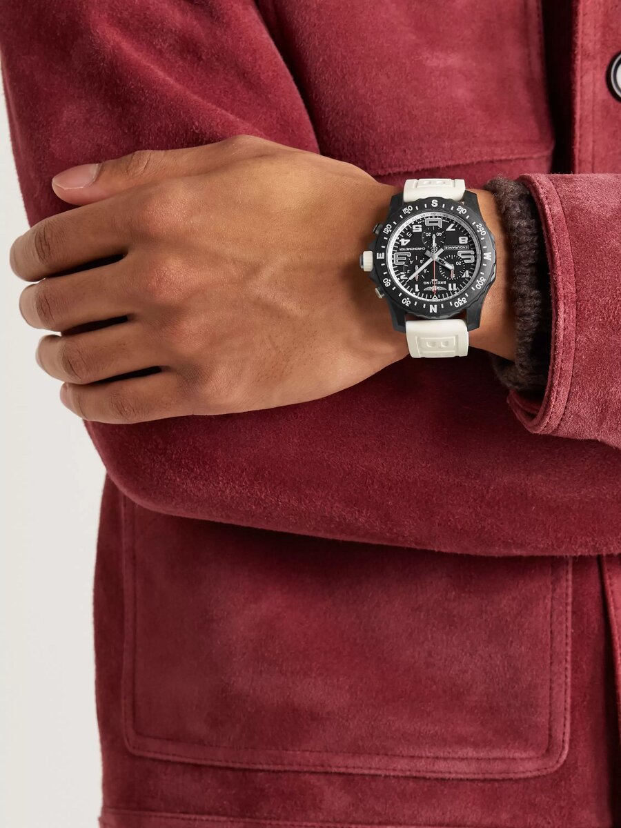 Наручные часы унисекс — яркий тренд как в женской, так и в мужской моде. Как ни странно, такие часы могут быть очень разными: от нейтральных до кричащих ярких моделей. Давайте вместе посмотрим на примерах и подумаем, к чему такие часы подойдут в женском и в мужском образах. Самый ожидаемый вариант: массивные унисекс В нашем представлении одежда и аксессуары «унисекс» — всегда нечто чуть более мужское, массивное и брутальное. Как правило, речь идет об аксессуарах, которые девушки могут использовать в отдельных образах, а не в повседневной жизни. Наручные часы Breitling Professional — именно такой вариант. Это массивные часы с контрастными деталями, причем этих деталей очень много. От начала «инь» здесь, конечно, ремешок: он буквально светится белоснежной чистотой, кроме того, на нем выгравирован бренд Breitling. Итак, девушки, мы «ловим за хвост» сразу два тренда. Во-первых, часы унисекс — тренд сами по себе. Во-вторых, крупные названия брендов на одежде, сумках и других аксессуарах в