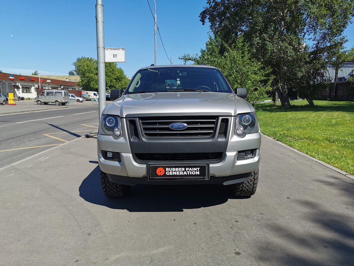 Разбираем полностью и красим с дверными проемами в Титан. В плачевном состоянии были только наружные накладки порогов, усилители еще походят. Усилители почистили, протравили и обработали. На кузове было много вмятин и прочих дефектов, все устранили. Далее перегнали в малярку и покрасили. Фото самой покраски, к сожалению, нет :( Не забыли защитить новые стекла фар полиуретановой пленкой! На выходе мы получили обновленный Эксплорер. Цвет очень красивый! Структуру не делали крупную. Кузов подчеркнули черными элементами. А главной изюминкой стали шильды енота! :) Покрасили некоторые элементы салона. Очередной Форд Эксплорер прошел через наши руки.