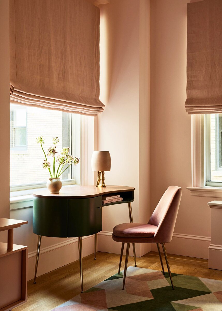 Идея работать из дома восхищает лишь тех, кто не испытал ее в течение нескольких месяцев. А дальше — все сложнее сосредоточиться на задачах, болит спина и очень хочется куда-то сбежать, лишь бы не опять. Вы удивитесь, как простая перестановка и организация рабочего места влияет на продуктивность! Даже не важно, повезло ли вам иметь отдельную комнату под кабинет или придется трудиться в последнем свободном углу общей комнаты — вам нужна встряска, которую подарит эстетика и логика вашего нового домашнего офиса. 1. Особенное место Начнем с идеального варианта: отдельного специального места для работы. Правильное настроение и атмосфера играет большую роль: как минимум, сесть и открыть ноутбук будет приятно: а, как говорят психологи, начало работы — это уже значимая часть продуктивного рабочего дня. Каким будет это место, какой энергетикой оно должно вас заряжать — лично ваш выбор. Но уголок, изображенный на фото, с изящным столом, текстилем и стенами, выкрашенными в оттенки рассвета, навер