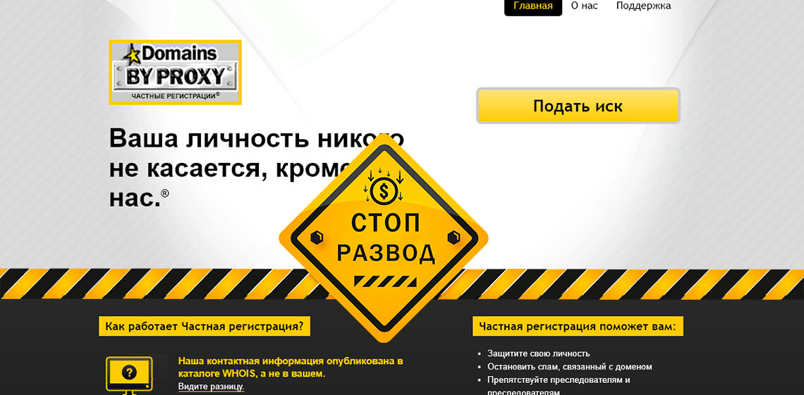 Особое внимание привлекает адрес почты, указан при регистрации. Переходим на сайт Domains by Proxy и вот, что мы видим.