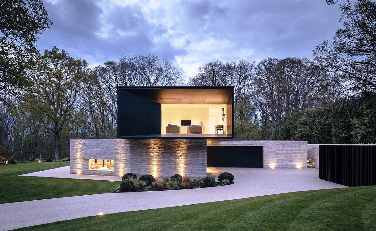 Ayre Chamberlain Gaunt – это архитектурная компания, которая создает качественные и красивые здания ориентируясь на реальные потребности заказчика. Claywood House был спроектирован для Джо Райт, инвалида с травмой спинного мозга, и ее семьи. Доминик Гонт, архитектор и руководитель проекта, следуя пожеланиям заказчиков, разработал новый проект дома. Расположилось здание в Хэмпшире, в саду Джо, неподалеку от старого особняка. Здание выполнено в современном стиле. Оно ассиметрично и контрастно. Первый этаж отделан светлым кирпичом. Над ним, выступая со стороны торцов, расположен второй уровень. Стены верхнего этажа обшиты деревом черного цвета. Деревянные планки уложены в симметричном порядке и имитируют вертикальные стволы деревьев. Остекление представлено окнами в пол, что позволяет любоваться окружающим ландшафтом. На нижнем уровне основные помещения - прихожая, холл, переходящий в просторную комнату, где расположились кухня, столовая, гостиная. Также на этаже есть бильярдная зала, под