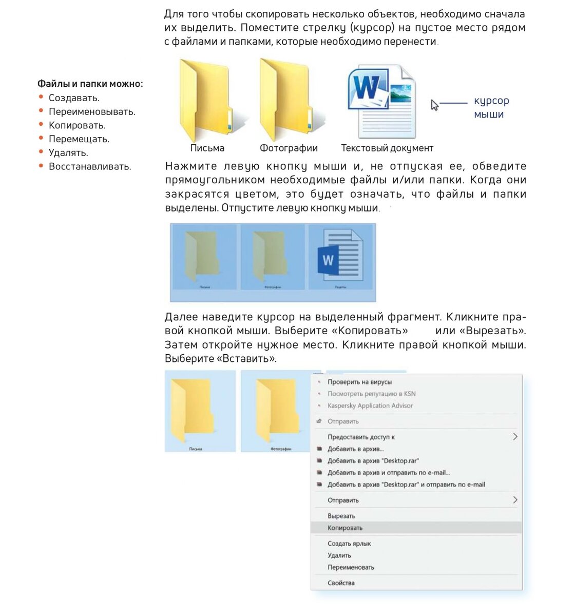 Копирование и перемещение нескольких файлов или папок в Windows.