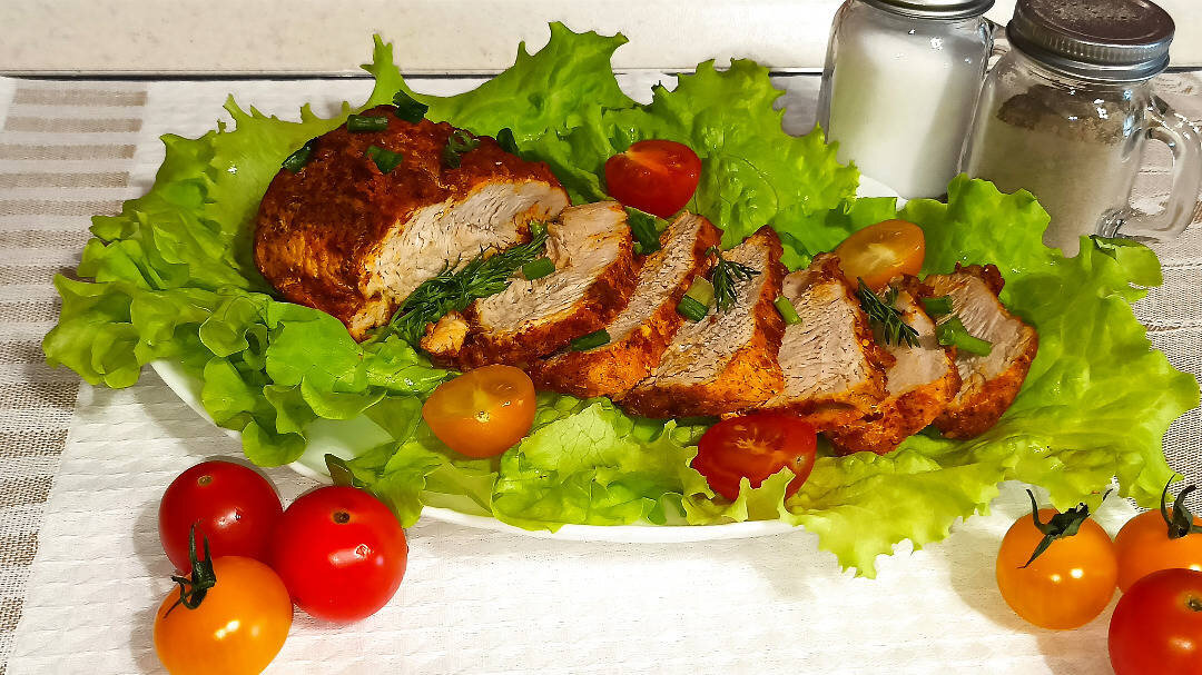Домашняя ветчина из индейки – готовится легко и просто. Отлично подходит для бутербродов, салатов и холодных закусок. Ингредиенты: Индейка филе, Чеснок, Паприка , Куркума , Оливковое масло , Пакет для запекания , Соль/перец , Любви ❤️ Способ приготовления: Филе индейки выложить в глубокую миску, добавить измельченный чеснок, специи, соль/перец по вкусу, оливковое масло и хорошенько перемешать. Переложить в пакет для запекания и скрепить его, затем уложить в форму. В пакете сделать проколы для выхода пара. Запекать мясо в разогретой до 180°С духовке в течение 1 часа. Спустя время ветчину переложить на тарелку и дать время полностью остыть. Затем нарезать ломтиками и украсить зеленью. Приятного аппетита! 👉 ВИДЕО РЕЦЕПТА: