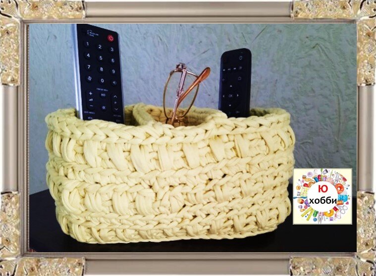Мы очень быстро привыкаем к комфорту. Одним из таких предметов, которые облегчают нам жизнь является пульт от телевизора. И мы уже не помним то время, когда соскакивали с дивана, чтобы переключить телевизор на другой канал (иногда с помощью пассатиж)) ). Компактное устройство, его удобно держать в руке. Но все же у этого предмета есть один недостаток - он всё время куда-то теряется. Вот и мне надоело как-то искать пульт и я решила сделать для него домик. А точнее - связать. Возможно кому-то тоже нужен домик для пульта, поэтому расскажу как его можно связать. Трикотажная пряжа вполне подходит для вязания таких предметов. Она плотная и хорошо держит форму. Донышко Сразу оговорюсь, что я не подрасчитала и набрала слишком много воздушных петель, поэтому пришлось импровизировать и в итоге у меня получился целый органайзер. Я решила что моя "пультяшница" будет овальной. Так мы продолжаем вязать пока наш овал не достигнет желаемого размера. Надо помнить что в последующих разворотах прибавки