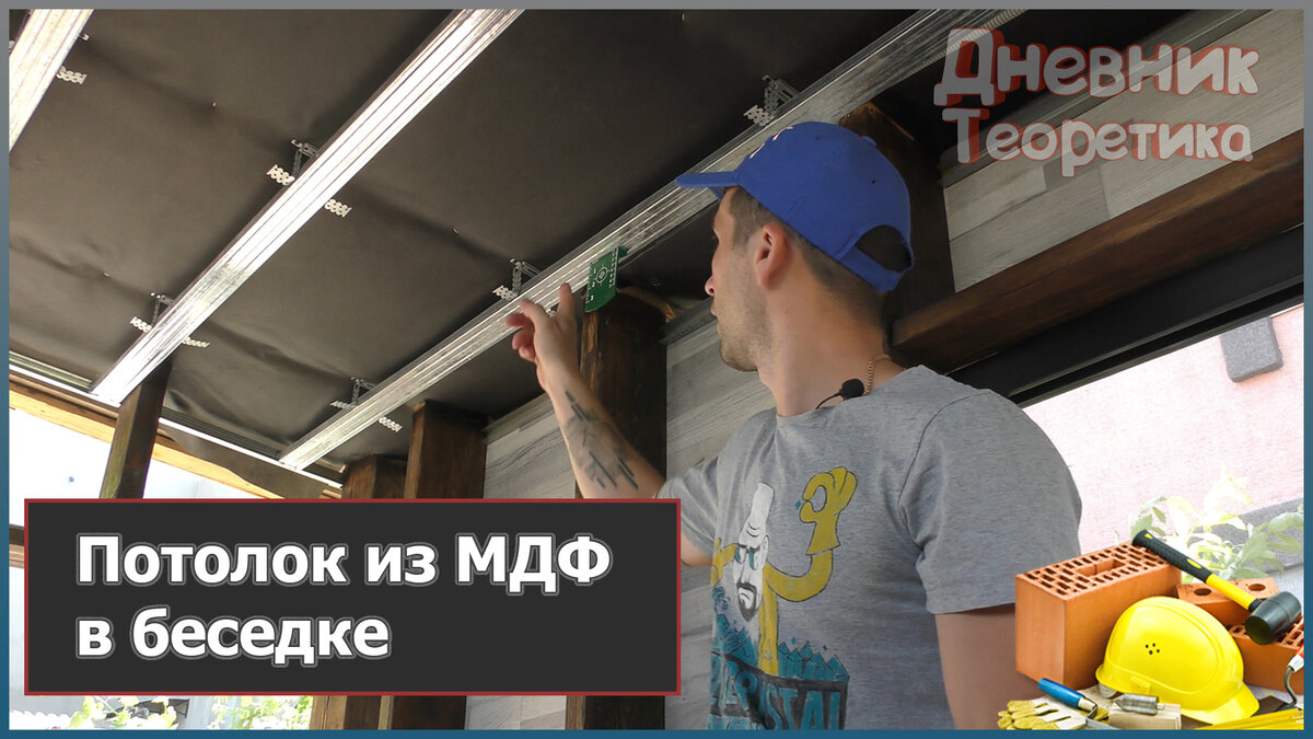 Потолок из МДФ в беседке. Сборка каркаса и монтаж панелей [№97]