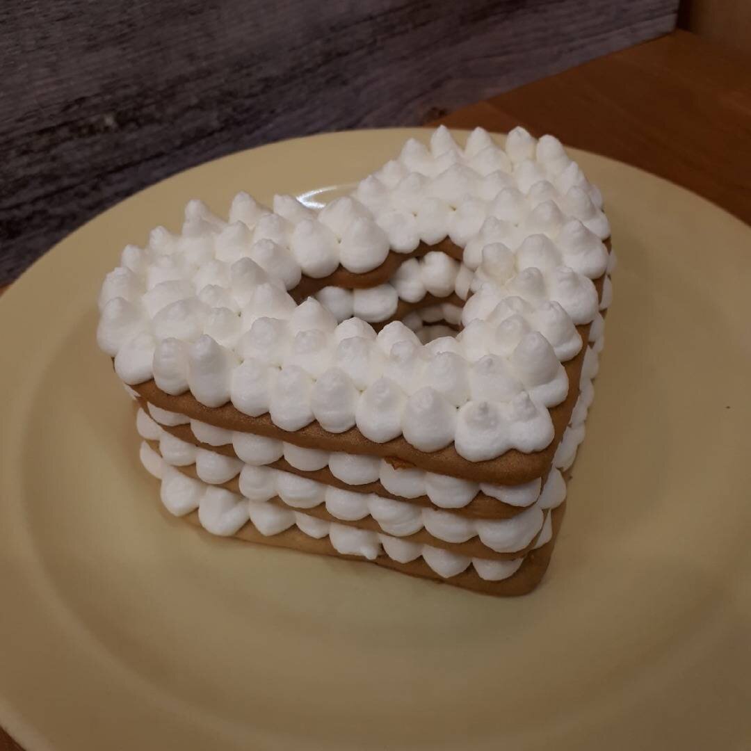 Тесто для медовика я делала с запасом, его можно хранить в морозилке до трёх месяцев. #бентоторт #медовик #валентинки Ингредиенты: мёда, сахара, яйцо с1, пряности (у меня анис и цедра), соды, сливочного масла, муки, Начинка, малинового пюре без косточек, сахара, кукурузного крахмала, Крем, жирных сливок, сахарной пудры, 20% сметаны, загустителя для сливок или для сметаны (у меня смесь того и того) Способ приготовления: Смешать в миске яйцо, сахар и мёд, поставить на водяную баню, добавить пряности и соду, добавить сливочное масло, перемешать, чтобы оно разошлось. Снять с огня. Добавить муку. Тесто будет липким, так и должно быть. Убрать в пакет в холодильник на 1,5-2 часа. Смешать малиновое пюре с сахаром и крахмалом. Уварить на маленьком огне до загустения. Из теста испечь пряники (170 градусов 7-10 минут). У меня сердечко шириной 10 см. Можно такого же диаметра кольцо. Посередине дырочка. Если без дырочки, понадобится больше крема и начинки. Взбить хорошо охлаждённые сливки со сметан