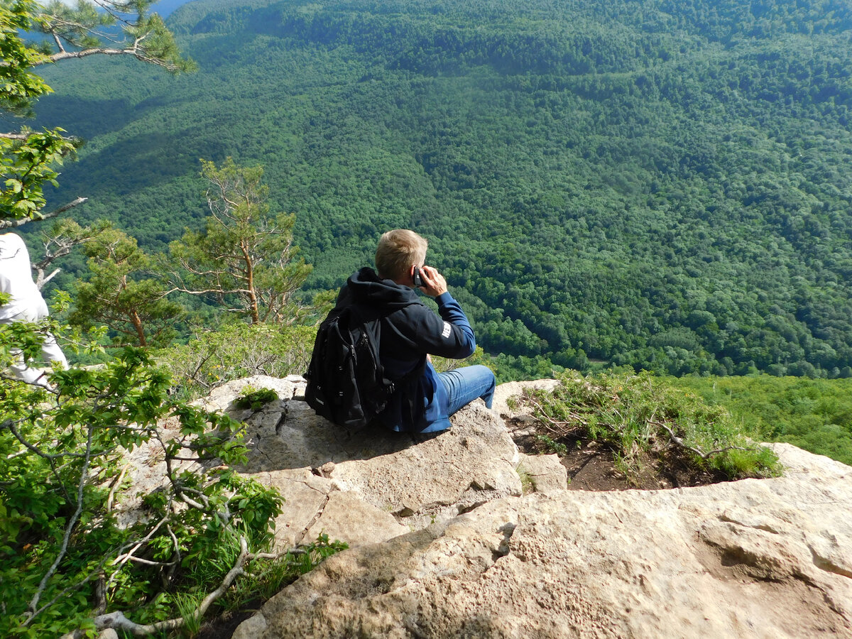 После ещё каких-то нескольких часов пути по скалистым горным тропам мы наконец вышли на скалу Пирамида – смотровую площадку над Орлиной полкой. Считается, что это лучший вид на Гуамское ущелье. Пожалуй, так оно и есть.